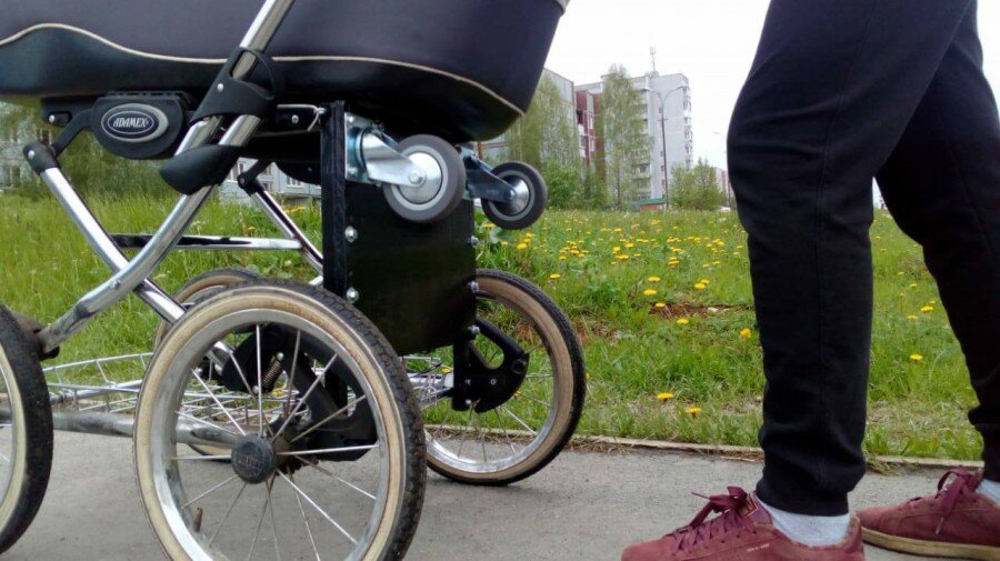 Прадедушке спокойно на пенсии не сидится, ему нужно что-то делать, придумывать или воплощать наши хотелки. Уже много в блоге его штучек показывал, еще бОльшего не показывал. Но вот свежее изобретение запечатлел сразу. Очень помогает при прогулке с детской коляской.