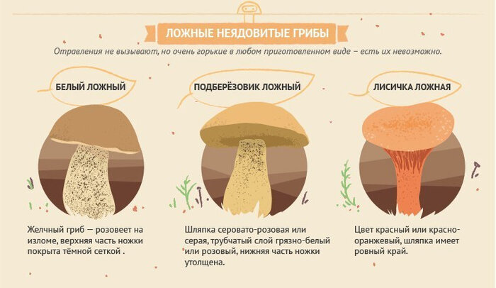 Даже бывалые грибники задумываются о том, настоящий гриб они нашли или ложный. Несъедобные двойники белых похожи на благородные грибы как две капли воды. Иногда ложный гриб не ядовит, но зато горек. Настолько, что приготовленные из него блюда невозможно есть.