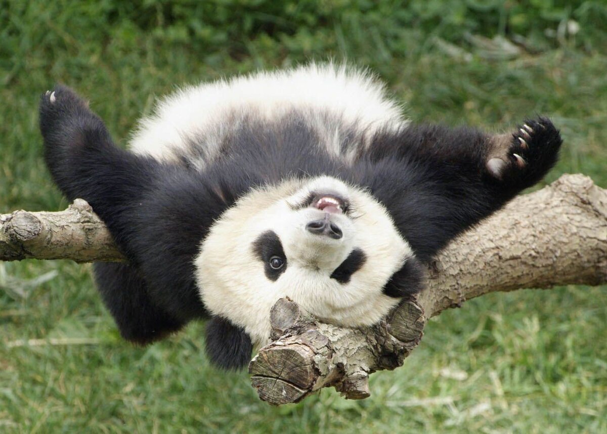 Пожалуй, ни одно животное за всю историю не покорило сердца людей так, как неуклюжие, уютные, мягкие на вид, большие панды Большая панда (бамбуковый медведь) - млекопитающее, родиной которого является центральный Китай. Большая панда живет в горных регионах. Со второй половины ХХ века панда стала чем-то вроде национальной эмблемы Китая. Китайское имя панды (сюнмао) означает «медведь-кошка», а латинское название Ailuropoda melanoleuca - можно перевести как «котолап черно-белый». Несмотря на то, что панды относятся к хищным животным, их рацион в в основном вегетарианский. Фактически они едят только бамбук. В день взрослая панда занята едой более 12 часов и съедает до 30 кг бамбука и побегов. Беременность самки длится пять месяцев. Для родов она подбирает нору в земле, под деревом. Рождается один или два детеныша, по статистике выживает один. Медвежонок очень мал и совершенно беспомощен, вес малыша около 100 грамм. Он нуждается в заботе и мамином тепле. Его тело покрыто тонкой редкой шерс