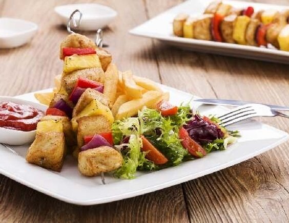Хочу сегодня с Вами поделится рецептом простого и вкусного блюда. Их легко можно приготовить у себя на кухне или во дворе, угощая друзей на природе. Приготовив, такое блюдо, Вы и Ваши друзья, останетесь довольны. Ингредиенты: Куриная грудка - 4 шт. Майонез - 250 мл. Красный болгарский перец - 1 шт. Консервированный ананас - 100 гр. Вода - 3 ст.л. Приправа Maggi ( домашний бульон с курицей, овощами и травами) - 2 ч.л. Способ приготовления: Если нет возможности жарить шашлычки на углях, их можно приготовить и в домашних условиях, нанизав на небольшие деревянные шпажки и обжарив на сковороде с разогретым растительным маслом.