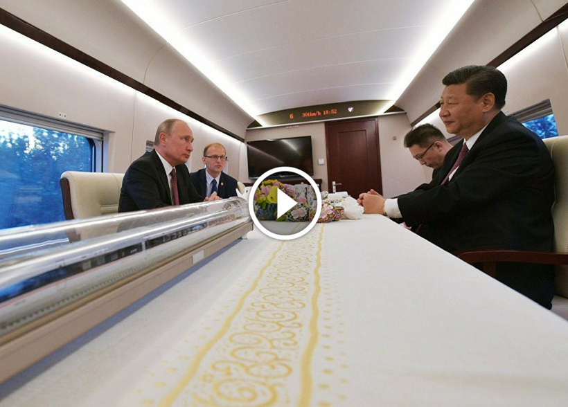 Владимир Путин и председатель КНР Си Цзиньпин 8 июня отправились на новейшем поезде «Фусин» из Пекина в китайский город Тяньцзинь. Расстояние в 120 километров состав преодолел за полчаса, развив скорость в 300 километров в час. На машине этот же путь занял бы полтора часа. Отметим, что поезд, название которого переводится как «Возрождение», является одним из флагманов китайского машиностроения, что и хотел продемонстрировать глава Китая российскому президенту. Примечательно, что за сутки до поездки, в рамках «прямой линии», китайский школьник спросил Путина, будет ли в РФ аналог такого же поезда, как в КНР? Президент тогда сказал, что ни разу на китайских высокоскоростных поездах не ездил, но поездка в программе визита уже запланирована. Путин добавил, что уже ведутся переговоры с китайской стороной о строительстве высокоскоростной железной дороги между Москвой и Казанью. Добавим, что лидеры двух стран приехали в Тяньцзинь, в частности, чтобы посмотреть на игру своих юниорских сбо