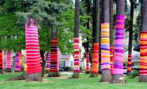 В одну из суббот июня, начиная с 2005 года, в мире отмечается необычный праздник — Всемирный день вязания на публике (World Wide Knit in Public Day). Уличное вязание иначе называют Ярнбомбинг. Название этого вида творчества произошло из английского языка, а точнее от двух слов: " yarn" "bombers" - что в переводе означает "бомбардировщики пряжей". История Появилось уличное вязание благодаря Магде Сайег. Магда родилась в 1976 году в Америке, город Остин и увлекалась вязанием еще с раннего детства. Началом уличного вязания послужило открытие Сайег собственного магазина в 2003 году. Она хотела привлечь покупателей и украсила входную дверь цветной вязкой. Стоит заметить, этот ход действительно сработал - яркое пятно выделялась на фоне серой улицы, заставляя обращать на себя внимание. В 2005 году Магда основывает группу под названием Knitta Please для любительниц вязания. Магда предложила избавиться от старой пряжи и дать ей новую жизнь создавая подобие "вязанного" граффити. Участники групп