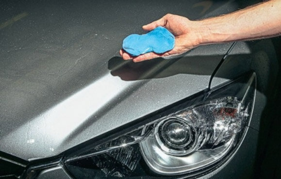 Все автолюбители замечали что их автомобиль со временем не так блестит как раньше, появляются пятна, которые видно только на солнце, остатки деревьев (липа, ива и другие почки от деревьев оставляют желтые следы на кузове), остатки птичьего налета, которые не убирается простой мойкой, ну и конечно же черный точки, а точнее битум или асфальт, которые можно убрать или уайт-спиритом или моим способом. Существует такая синяя глина. Абразивная, чистящая, но главное синяя глина. Вообщем то она так и выглядит. Вот именно она убирает всё, что я описал выше. А процесс ее использования очень прост: Глина оттирает грязь, придает блеск, а главное все это можно сделать самому. В магазинах кусок глины стоит в районе 500 рублей, этого хватит минимум на два раза обработки вашего автомобиля. Всем не гвоздя не палки