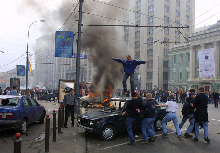 «Пиво продавали на самой Манежной площади, в переходах и в начале Тверской. В первом тайме народ только начинал выпивать, но во втором тайме уже выпил прилично. Допив бутылку, некоторые бросали ее за спину – она падала, разбивала кому-то голову, дальше человек шел разбираться. Так возникали локальные потасовки, – вспоминает в беседе со Sports.ru очевидец Сергей Малашенко (далее вы узнаете, почему руководитель ГУВД обвинял его в возникновении беспорядков). – Если бы тогда можно было снять площадь с квадрокоптера, было бы видно, как одни люди расступались, а вторые – шли на разборки».