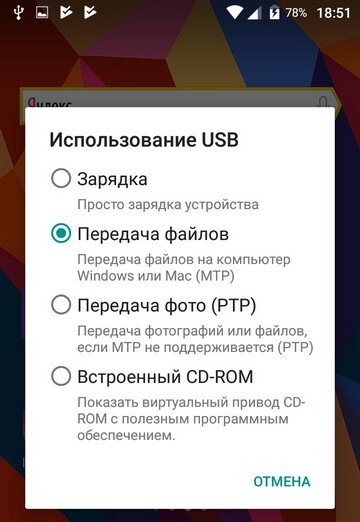 При первом подключении к компьютеру телефон автоматически переходит в режим Зарядка. Вам нужно выбрать режим Передача файлов (MTP), либо Передача фото (PTP). Первый режим предпочтительнее, так как вы сможете копировать туда и обратно файлы любых типов. Второй режим нужен для копирования на компьютер фотографий и видеозаписей, сделанных на смартфоне.
