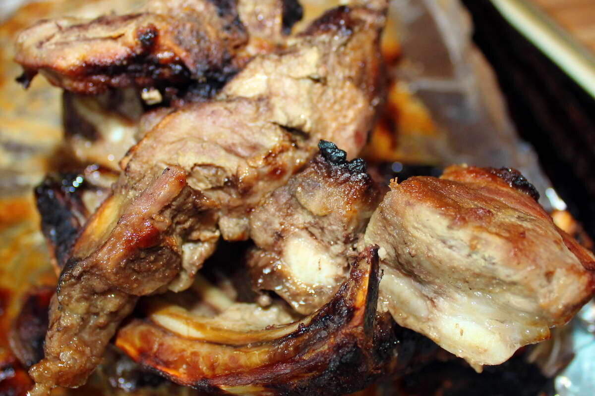 Привет! :) Если у вас случайно завалялись свиные ребрышки, то есть очень простой способ сделать их вкусными свиными ребрышками, не прилагая никаких усилий. Понадобится: Свиные ребрышки или хрящи Любой китайский соевый соус из любого магазина Любой мед Любая горчица Соль Как готовить: Смешать соевый соус, мед и горчицу и несколько щепоток соли, хорошо перемешать, чтобы получилось жидкая кашица. Залить смесью ребра и оставить их мариноваться на час-два. Затем равномерно разложить на противне с фольгой, вылить сверху остатки соуса, оставить в разогретой до 160 градусов духовке на 30 минут. Затем увеличить температуру до 210-220 еще на 10 минут. И все :) Когда вынете из духовки, полейте слившимся вниз соком и соусом. Приятного аппетита! :)