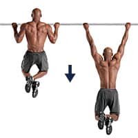Далее, медленно опускайтесь вниз. Выполняйте упражнение настолько медленно, насколько это будет в ваших силах. В определенный момент вы почувствуете, что сила тяжести сильнее и быстро опуститесь вниз на выпрямленные руки. Это абсолютно нормально. Забирайтесь снова на турник и возвращайтесь в исходное положение.