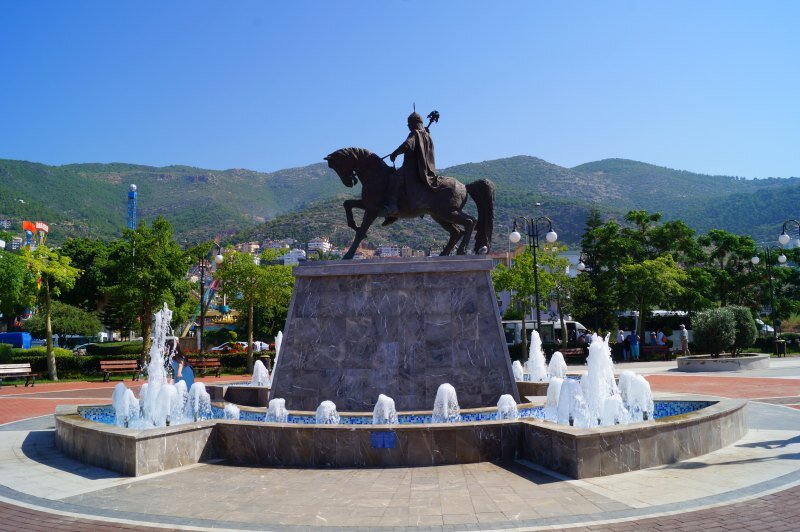 Собственно, по самому городу нас возили совсем немного. Такое впечатление, что больше народ по отелям в автобус собирали. Но тем не менее мы ухватили два самых «больших» памятника Алании: султану Ала ад-Дину Кей-Кубаду I и памятник первому президенту Турции Ататюрку.