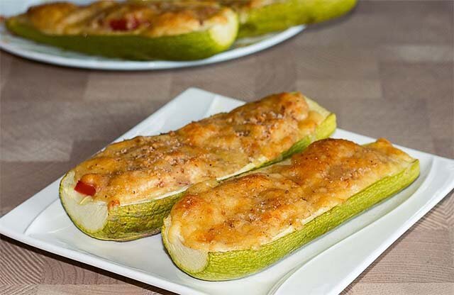 Вкусные, румяные и аппетитные кабачки, запечённые в духовке, не отнимут много времени. Продукты для приготовления: 1. Кабачок – 1 шт.; 2. Сыр масдам – 20 гр.; 3. Сыр гауда – 20 гр.; 4. Сыр пармезан – 20 гр.; 5. Сметана 10% - 2 ст. л.; 6. Перец и соль по желанию; Процесс приготовления: 1) Хорошо моем кабачок, и убираем попки с двух сторон. 2) В кипячёную воду опускаем кабачок и варим 8 мин. После чего выкладываем и остужаем. Делим кабачок на 2 половинки и вынимаем семечки. 3) Натираем сыр гауда, масдам и заполняем им кабачки. Заливаем сметаной. 4) Посыпаем натёртым пармезаном. 5) Запекаем в духовке при 190 градусах до появления золотистого цвета. Приятного Вам аппетита! ღღღღღღღღღღღღღღღღღღღ Подписывайтесь на ГОТОВЬТЕ С УДОВОЛЬСТВИЕМ, чтобы в Вашей ленте было много вкусных и полезных рецептов! Наградой для нашего канала будут лайки, репосты и Ваша подписка. Успехов Вам и хорошего настроения! ღ ПОДПИСАТЬСЯ НА КАНАЛ ღ