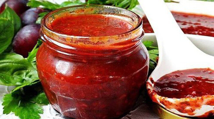 Интересный по вкусу кисло-сладкий соус из острого перца и слив - отличная заправка к мясу. Она имеет присущую классической аджике остроту, а благодаря фруктам - более нежный привкус. Сливу для соуса желательно брать с кислинкой, что он не получился чересчур сладким. А если вам захочется, чтобы он был сильно острым, то пропорции перца чили и чеснока можно увеличить. Аджика готовится без стерилизации. Понадобятся такие ингредиенты: Добавить аджике пряности поможет приправа хмели-сунели. Как готовить Сливы, очищенные от косточек, смешайте с солью и сахаром, поставьте на небольшой огонь и проварите 5 минут. После чего добавьте измельченный сладкий и острый перец и томатную пасту (если вы будете пробивать аджику блендером, то перец можно просто мелко порезать, если нет - то перекрутить оба вида через мясорубку). Варите аджику еще 10 минут. Добавьте измельченный чеснок и через 30 секунд уберите с плиты, добавьте хмели-сунели. Взбейте смесь блендером (это можно пропустить). Снова вскипяти