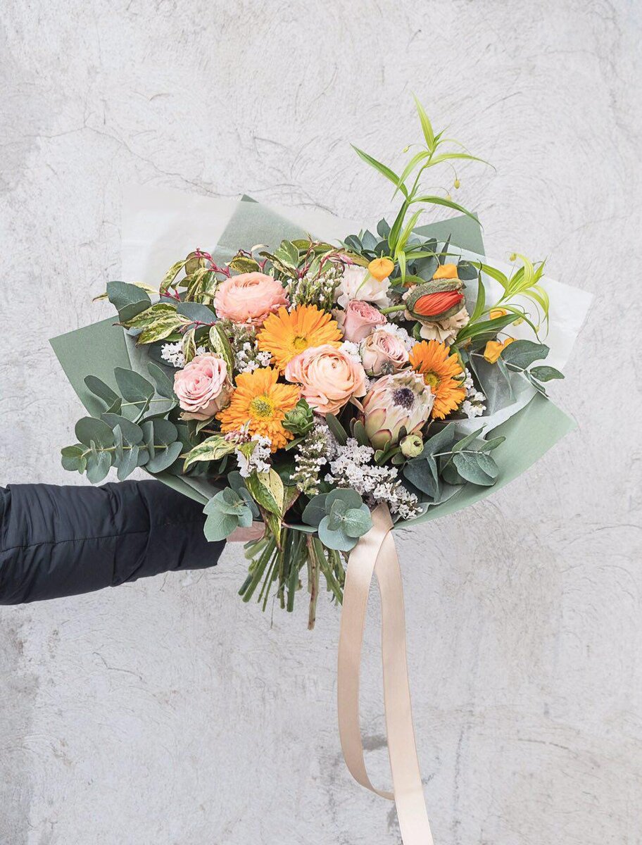 Выбирая цветы, проконсультируйтесь с флористом. Некоторые цветы лучше брать в моно варианте: например, нарциссы выделяют сок, ядовитый для других растений, гиацинты препятствуют поглощению воды другими цветами. Проконсультируйтесь по стойкости выбранного вами цветка. Пионовидная или садовая роза не может простоять дольше, чем обычная. Ваза должна быть подходящего размера (минимальный объем: 1 литр воды). Лучше уточнить у флориста рекомендуемое количество воды. Цветам с трубчатым стеблем, каллам, амариллисам — воды нужно совсем немного, розам, гортензиям — не менее половины длины стебля. Всегда используйте чистую вазу (не используйте антикварные, хрустальные и металлические вазы) и свежую холодную водопроводную воду. Рекомендуемая температура воды около 10 — 15 º C. О выборе ваз можно прочесть ниже. Добавьте подкормку для цветов, следуйте инструкциям по дозировке, указанным на этикетке. Почему профессиональная подкормка? Как только цветы срезают, они лишаются воды, питания и гормонов ро