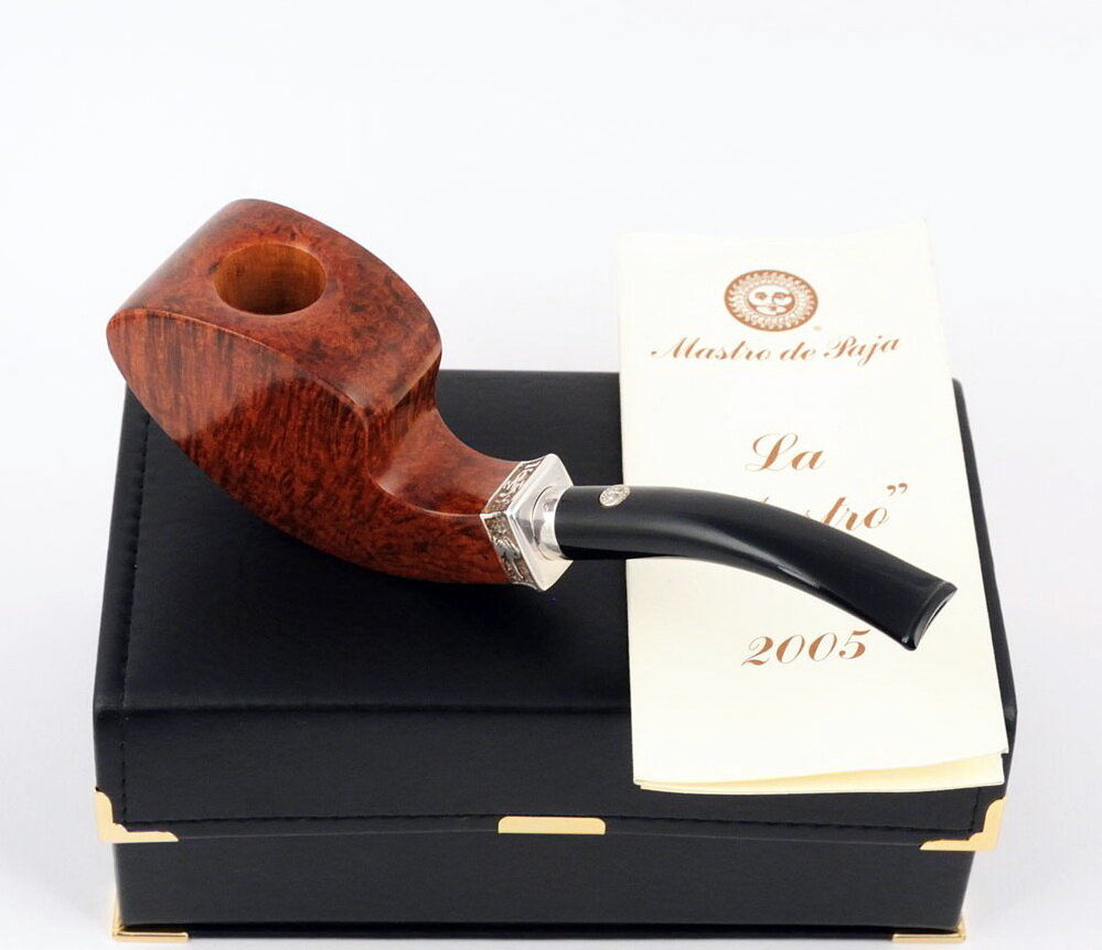 Трубка Mastro de Paja "La Mastro", трубка года, как позиционировали её в Mastro de Paja в 2005 году. "Трубка года" вообще популярный ход едва ли не у всех трубочных компаний, но только у топовых производителей - это уникальные произведения. Эта трубка исполнена в особенном шэйпе, с морилкой цвета грецкого ореха, подчёркивающей исключительное зерно бриара. Из украшений трубка несёт лишь тонкое серебряное кольцо, да и такой трубке не нужны украшения. "La Mastro" были выпущены в количестве 300 экземпляров, по цене 670 евро. Если понравился пост, ставьте, пожалуйста, лайк, чтобы я знал, какие новости Вам наиболее интересны. Подписывайтесь на мою ленту и будьте в курсе самой увлекательной и познавательной информации о табаке и культуре его потребления!
