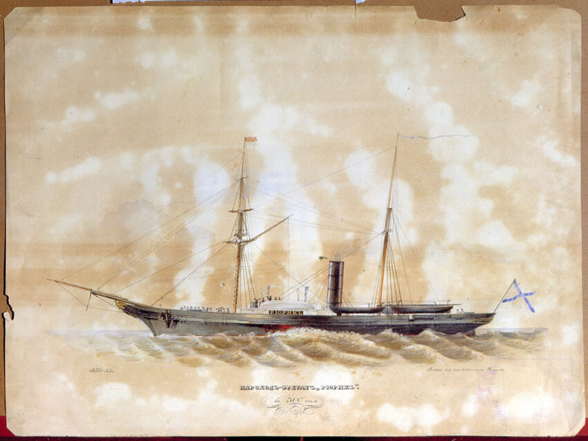 В составе Российского Императорского флота "Рюриков" было больше , чем в нашей истории : целых пять вместо одного. Парусный бриг стал известен кругосветкой под командованием Коцебу , затем в Або был построен 4-х пушечный пароходо-фрегат изображение которого нам и демонстрирует рисунок. Правда вооружение во время Крымской войны усилили до 6 орудий (самых мощных из имевшихся 2-пудовых бомбических). Честно отслуживший 1852 по 1870 год корабль был сменён новым пароходо-фрегатом и опять постройки Або , тот прослужит с 1870 по 1890 год и четвёртым будет знаменитый броненосный крейсер. Героияеская гибель в русско-японскую войну и наследует громкое имя новый крейсер , который не посрамит себя уже в первую мировую.