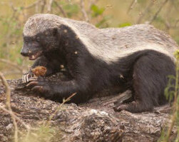 Медовый барсук, также известный как мёдоед является млекопитающим, обитающим в Африке, Юго-Восточной Азии и индийском субконтиненте. Это чрезвычайно свирепое животное, которое делает его одним из самых удивительных животных на планете. Взрослые представители породы составляют от 23 до 28 см в высоту и до 77 см в длину, причем самки меньше самцов; самец весит от 9 до 16 кг, а самка весит от 5 до 10. Они имеют тело, покрытое волосами, разной окраски, обычно черно-белой. У него очень сильная и толстая кожа, маленькие глаза и уши, факты, которые делают его менее уязвимым в битвах с другими животными. Их пища в основном плотоядная, питается насекомыми, лягушками, грызунами, паукообразными (главным образом скорпионы) и маленькими птицами, но также употребляет такие продукты, как корни и ягоды. Также его рацион составляют змеи (в том числе ядовитые) и мед (от которого идет свое название). Змеи составляют более половины меню барсука. Иммунитет к ядам, имеет первостепенное значение для его