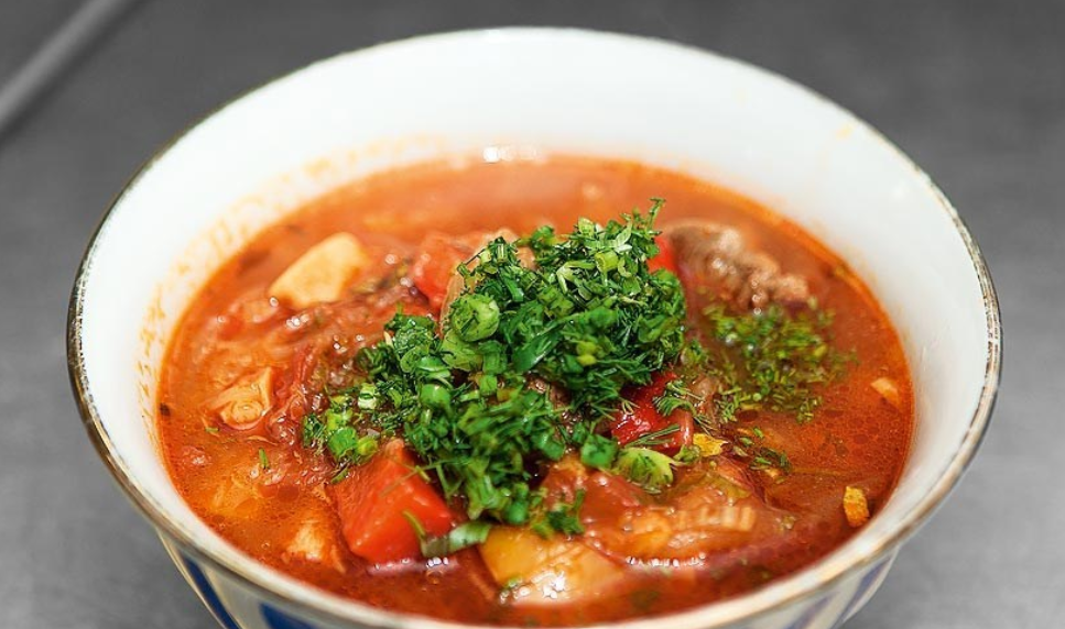 У лагмана такая длинная история – как лапша, которую для него тянут. Его считают своим уйгуры, но и узбеки считают своим тоже. Как и китайцы, которые называют его ламянем. А еще есть у лагмана дальний японский родственник рамен. Ингредиенты Анис (бадьян) 5,5 г Пшеничная мука 1 кг Яйцо куриное 1 штука Лук репчатый 320 г Баранина 640 г Сладкий перец 420 г Помидоры 200 г Чеснок 120 г Стебель сельдерея 80 г Стручковая фасоль 120 г Томатная паста 120 г Растительное масло 180 мл Зелень сельдерея 20 г Зеленый лук 20 г Укроп 20 г Семена кориандра 5,5 г Молотая паприка 10 г Соль 30 г 1. Соль (20 г) растворить в полутора стаканах холодной воды. Муку высыпать в таз и разбить в нее яйцо. Постепенно вливая солевой раствор, замесить тесто. Оно должно стать эластичным, не слишком мягким, но и не слишком жестким, так что может оказаться, что раствор понадобится не весь. Готовое тесто накрыть пленкой и оставить на два часа. 2. Тем временем очистить и нарезать довольно крупно лук,