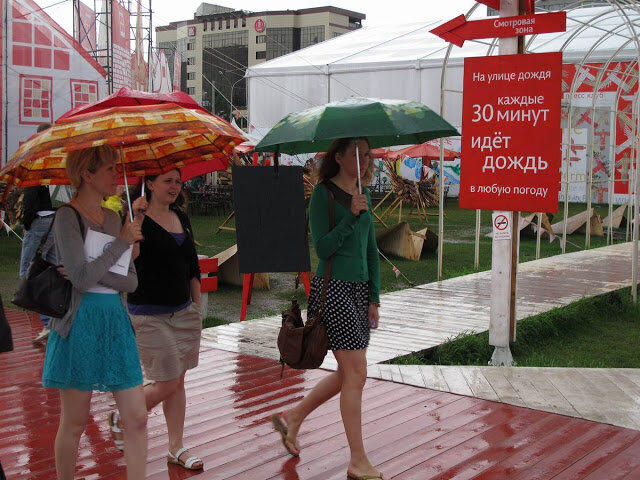 Этот день фестиваля "Белые ночи Перми 2012" по праву войдет в историю как день дождя. Во всяком случае в мою историю. И если пока шел дождь было еще тепло, то после него, к закату, температура резко упала. Не осмотрительно поленившись съездить за теплой одеждой, я был вынужден жаться к кондиционеру, который был включен на "тепло" и грел мою макушку. Ну хоть что-то. Окончательно продрогнув, я вернулся домой непривычно рано к 12 часам ночи. Второй темой дня, несмотря на ненастье, было открытие двухдневного музыкального фестиваля "Движение".