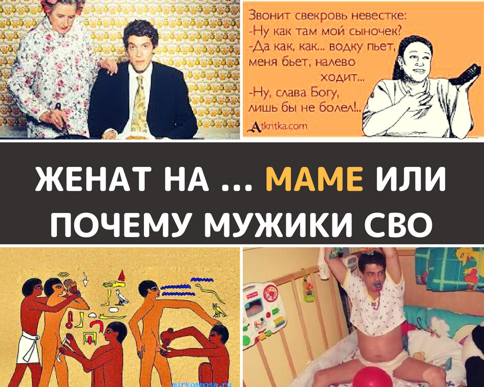 Надо сказать, что жен там либо вообще не было, либо сбежали без оглядки, либо подвинули мамулю на посту памперсов, либо жертвенная страдалица, поскольку маман вечно всем недовольна и лезет в жизнь сынули с критикой невестки...Равняйсь-СМИИРНО!