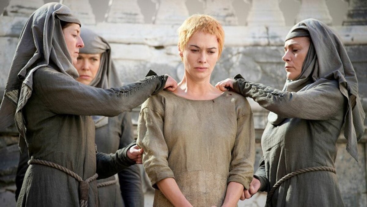 Когда поклонники сериала "Игра престолов" узнали, что "дорогу позора", по которой следует Серсея Ланнистер в пятом сезоне, прошла дублёрша, они были в некоторой степени возмущены. Фанаты Лины Хиди (а это именно она сыграла роль Серсеи) были уверены, что видели тело любимой актрисы, но были обмануты. Вместо Лины обнажённой прошла начинающая актриса Ребекка Ван Клив. Съёмки этой сцены, длящейся всего шесть минут, проходили в Хорватии и заняли целых три дня. Кстати, стоила эта сцена 200 тысяч долларов, так как пришлось нанимать дополнительную охрану, чтобы разогнать ненужных зрителей на протяжении всего "пути позора". Это была непростая сцена - в этом признаётся как дублёрша, так и Лина, которая наотрез отказалась появляться обнажённой в кадре. Сама актриса объясняет свой отказ тем, что хотела сосредоточиться на эмоциях и голое тело могло ей в этом помешать. Возможно, были и другие причины. Она шла вслед за дублёршей в лёгкой накидке и "играла" эмоциями. Затем команда из монтажа просто