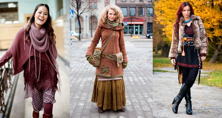 Стиль бохо в одежде представлен несколькими направлениями: бохо-шик, бохо-гламур, историческое, эко-бохо, этно-бохо, нью-хиппи, бохо-бомж. Стиль бохо представляет собой сочетание различных стилей, фактур, цветов. Прекрасная возможность не следовать стереотипам и модным стандартам, устанавливая свои правила. Любое стремление к свободе выражения и уникальности приветствуется. Главное – не переборщить с аксессуарами. Умеренность все-таки никто не отменял. В образе могут присутствовать как дешевые простые вещи, так и стильные новинки дизайнерских домов. Часто этот стиль выбирают творческие личности: актеры, модельеры, художники. Встретить одинаковые образы практически невозможно. Деталями служит драпировки, оборки, рюши, складки. Используются декоративные элементы ручной работы. Брюки с рваными элементами. Простые джинсы. Светлые штаны из льна. Многослойные юбки. Цветные рубашки. Кружевные футболки. Брендовые блузы. Вязаный кардиган. Меховая накидка. Жилет из плотной ткани. Яркий п