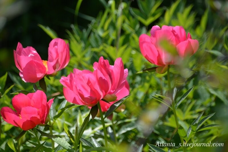 У меня обычно пионы зацветают в середине мая, одной из первых цветет "Балерина", и заканчивают цвести в первых числах июля.