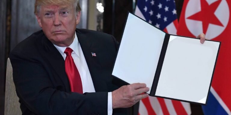 Что Трамп показал Ким Чен Ыну — серия мемов с использованием кадров встречи президента США Дональда Трампа и лидера Северной Кореи Ким Чен Ына, состоявшейся в Сингапуре 12 июня 2018 года. Трёхпанельный формат использует фотографию Трампа с соглашением, после прочтения которого Ким Чен Ын либо пожимает ему руку, либо отдаёт приказ о ядерной атаке. Происхождение Кадры мема были взяты из состоявшейся 12 июня встречи Дональда Трампа и Ким Чен Ына в Сингапуре. Встреча лидеров двух стран завершилась подписанием соглашения, в котором Северная Корея «закрепляла намерение на полное ядерное разоружение», а США «обещали гарантии безопасности», а также рукопожатием. 11 июня пользователь сабреддита r/memeeconomy HEXEL97 предложилиспользовать кадры из встречи в качестве двухпанельного формата. Другие пользователи настояли, что трёхпанельный вариант выглядит смешнее. Значение Что Трамп показал Ким Чен Ыну — трёхпанельный (иногда двухпанельный мем) с изображениями президента США Дональда Трампа и лид