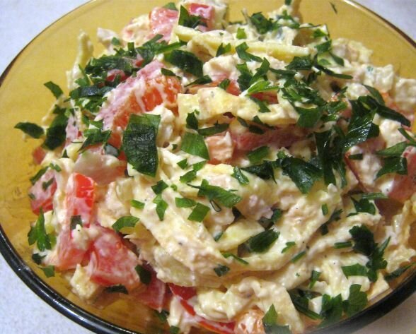 Хочешь много интересных рецептов, тогда скорее подписывайся на наш канал и смотри наши публикации. Впереди еще много интересного! Ингредиенты: Куриное филе — 500 г Яйца — 5 шт. Лук — 1 шт. Майонез , Зелень петрушки, Соль, Перец - по вкусу Перец болгарский - 1 шт. Растительное масло — для жарки Приготовление: 1 курицу отварить и нарезать на маленькие кусочки 2. Лук нарезать мелкими кубиками 3. Яйца взбить посолить и выпекать блинчики, остудить и нарезать соломкой 4. Перец так же нарезаем соломкой 5. Все ингредиенты перемешать с добавлением майонеза. Украшаем блинчиками и зеленью, подаем к столу. Приятного аппетита:) Если Вам нравятся наши рецепты ставим ЛАЙК и подписываемся наканал. СРЕДСТВА ДЛЯ ПОХУДЕНИЯ В ДОМАШНИХ УСЛОВИЯ ПОЛЕЗНЫЕ МЕЛОЧИ ДЛЯ ВАШЕЙ КУХНИ СБОРНИК ВСЕХ РЕЦЕПТОВ "РЕЦЕПТОМАНИИ" ХОЧУ ПОХУДЕТЬ! НАУЧИТЕ!?