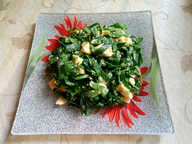 #вкусно и полезно Легким и низкокалорийным салатам должно найтись место в вашем меню. Отличным вариантом станет холодная закуска со шпинатом. Этот листовой овощ способствует очищению организма от шлаков и токсинов, снабжает его питательными веществами, улучшает обмен веществ и пополняет запас энергии. Понадобятся: Шпинат вымыть и нарезать крупно. Кукурузу слить и добавить к шпинату. Перепелиные яйца отварить, очистить от кожуры и порезать на половинки. Добавить к остальным ингредиентам. Огурцы и сыр нарезаются кубиками и также добавляются в общую массу. Поперчить. Далее необходимо приготовить заправку: Смешать отдельно соевый соус, подсолнечное масло и сок лимона. Заправить готовым соусом салат и дать постоять пару минут. Все рецепты салатов со шпинатом предполагают приготовление прямо перед подачей на стол, чтобы листья не завяли и были сочными и хрустящими. Приятного аппетита. Если вам понравился рецепт пожалуйста ПОДПИСЫВАЙТЕСЬ и ставьте "ПАЛЕЦ ВВЕРХ" Всем пока! Следите за к