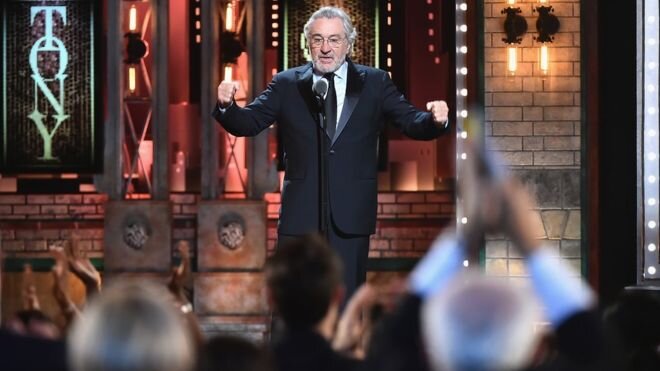 Де Ниро, который ранее сказал, что хотел бы ударить президента, получил бурную овацию за свою атаку в два слова на Tony Awards.