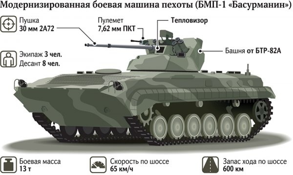 Минобороны завершает испытания модернизированной боевой машины пехоты БМП-1, проект получил шифр «Басурманин». Машину оснастили современной системой наведения, автоматом сопровождения цели и тепловизором. Принятые на вооружение более полувека назад «копейки» (так их называют на армейском сленге) применялись в десятках локальных конфликтов по всему миру. Сейчас БМП-1 устарела, но в военном ведомстве решили дать ей новую жизнь.
