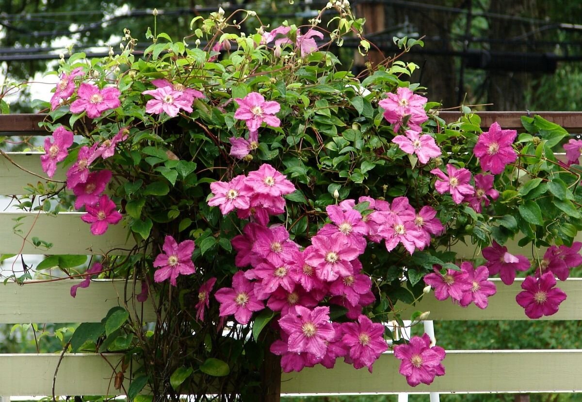 Клематисы будут хорошо цвести только если их обильно поливать, правильно обрезать и регулярно удобрять. От удобрения зависит в целом состояние растения, поэтому подкармливать цветы необходимо обязательно. Первую подкорку необходимо проводить в мае следующим удобрением: в ведре воды разводим 2 г аммиачной селитры. Полученным раствром поливаем растение по влажной почве. Вторую подкормку проводим в начале июня органическими удобрениями, чтобы начался активный рост листвы и стеблей. Для этого в ведре воды разводим 1 л жидкого коровяка. Полученным раствором поливаем клематис по влажной почве. Вместо коровяка можно внести куриный помет. Для этого в ведре воды разводим 0,5 л помета. Полученным раствором поливаем клематис по влажной почве. Чтобы корни не получили ожогов. Благодаря данным удобрениям с высоким содержанием азота начнётся активный рост зеленной массы, а также корневой системы. Если с органическими удобрениями возникла сложность, их очень трудно найти. То вместо ни