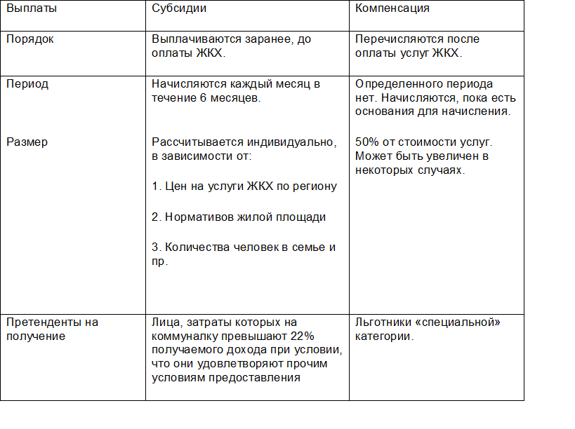 В наши дни тарифы на коммунальные услуги растут с невероятной скоростью, в то время как уровень пенсии останется сравнительно низким. Как уменьшить расходы на оплату жилья? Как таковых «пенсионных» льгот на коммуналку не существует. Есть «специальные», а так же «общие» льготы, на которые могут претендовать пенсионеры. К первой категории относятся, например, ветераны труда, инвалиды, почетные доноры и пр. Что касается «общих» льгот, они представлены в виде компенсаций и субсидий. Это совершенно разные виды господдержки, которые могут применяться вместе. В таблице ниже приведены различия между ними: Субсидии предоставляются на следующие виды услуг: Водоснабжение и водоотведение Отопление Газоснабжение Электроэнергия Квартплата Условия предоставления субсидий пенсионерам на оплату услуг ЖКХ. Для этого необходимо соответствовать нескольким критериям: Коммуналка «съедает» более 22% месячного дохода. При этом в каждом регионе может быть установлен свой процент; Гражданство РФ; Зарегистриро