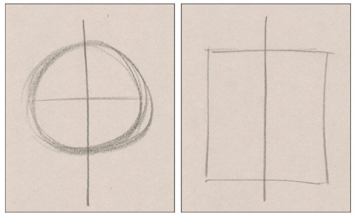 Важно отточить ваши навыки рисования, чтобы настроить себя для успешной живописи акварелью (и не только ею, карандашная основа в рисовании — это основа всего). В данной статье мы этим и займёмся. Использование осевой линии Использование осевой линии при рисовании фигур может помочь вам добиться точности измерения и симметрии. Перед рисованием базовой фигуры нарисуйте вертикаль и/или горизонталь; после этого используйте эту основу для того, чтобы нарисовать вашу форму, равную с обеих сторон и не заваленную в стороны. Помните: рисование прямых и ровных линий и кругов требует практики и времени. Когда вы будете расти как художник, эти основные навыки улучшатся. Но работать над ними нужно постоянно, пока вы только начинаете. Пропорции Для достижения чувства реализма в вашей работе важно установить правильные пропорции. Использование осевых линий, как показано выше, обеспечит начальные руководящие принципы. Оттуда вы должны определить форму объекта. Осмотрите вертикальные,