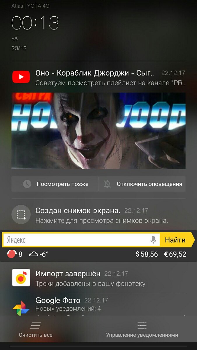 В итоге я решил провести эксперимент: стал обсуждать вслух фильм ужасов "Оно". Хочу сделать оговорку, что эту картину я не смотрел. Информацию о ней не искал в поисковых системах. Единственное, что я делал - три раза за день специально обсуждал вслух этот фильм. Результат не заставил себя ждать, ближе к ночи YouTube прислал мне пуш-уведомление про фильм "Оно".