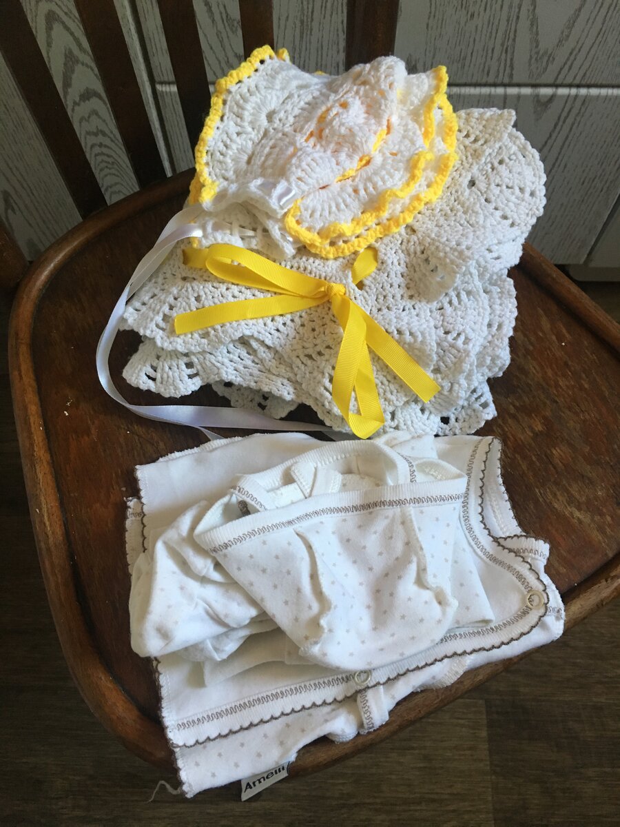 Я уже не раз упоминала в своих постах о том, что скоро у нас в семье появится второй ребенок. Остался какой-то месяц, но у меня абсолютно ничего не готово)). Недавно только собрала воедино сумку в роддом, а то купить необходимые вещи - купила, а как распихала по квартире, так и на этом все)). Но одно дело собраться самой, а другое - подготовить "приданное" на выписку будущей дочке. Как-то писала уже на эту тему, поэтому и в этот раз решила не изменять себе. Малышка родится летом, поэтому не вижу смысла покупать пеленки и конверты (в моем случае у родственников мужа детей много, поэтому приданного - как в мультике: "У него этого гуталина завались, вот и шлет, кому попало"))))). Я решила, что нам достаточно будет костюмчика, вязанного пледа и такого же чепчика. Мне кажется, что "выписной" комплект можно сравнить с белым платьем - нередко и то, и другое используется только один раз. Если с платьем все понятно, то костюмчик и все остальное еще можно одеть, к примеру, на визит к педиатру