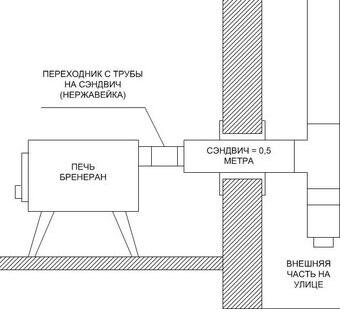 После долгих поисков в Интернете информации о том, какая нужна печь в дачном домике и как построить дымоход для неё, Хищный Мышь пришёл к выводу, что для его дома подходит печь Бренеран (Булерьян) 01. А дымоход он решил ставить типа «сэндвич».