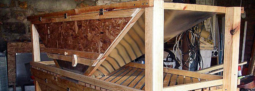 А зимой в клетку в обязательном порядке помещается специальная «нора», ящик, расширенный вглубь. Детали соединяются гвоздями или шурупами.