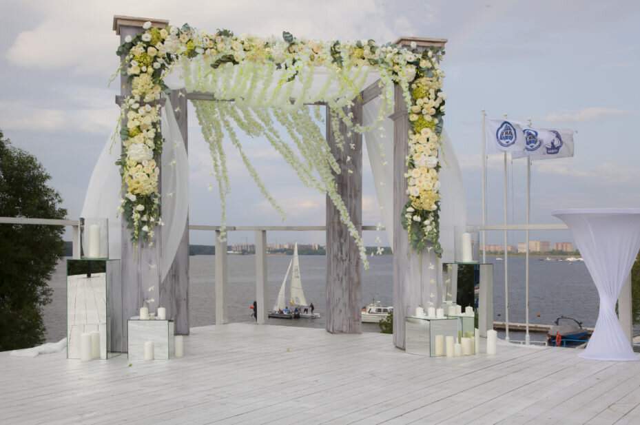 Стильная свадьба на берегу Пироговского водохранилища, площадка Белый Парус