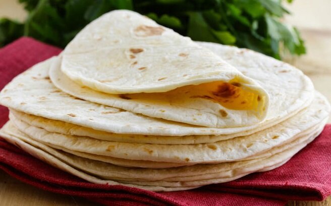 Рецепт мексиканских лепешек, которые выпекаются на сухой сковороде. Для приготовления теста используются самые обычные ингредиенты. Дрожжи не нужны. Не путать с итальянским блюдом la Tortilla! Это мексиканские бездрожжевые лепешки для буррито, кесадильи и т.п. Такие лепешки используют для приготовления различных мексиканских блюд. Но принцип один - внутрь вкладывают ту или иную начинку. Это отличная альтернатива уже приевшихся всем лавашей. Важно знать, что через минуту после приготовления лепешки начинают подсыхать, становятся ломкими. Размягчить их можно снова нагрев на сковороде. Если вы не планируется сразу добавлять начинку, заверните еще горячую тортилью в кухонное полотенце. А если для вашего блюда предполагается особая форма, например, лепешка должна быть сложена вдвое или завернута рожком, то сделайте это сразу на теплых лепешках. Понадобятся следующие ингредиенты (на 6 шт): Смешайте муку с солью, добавьте разрыхлитель. Сначала влейте растительное масло и перемешайте. А за