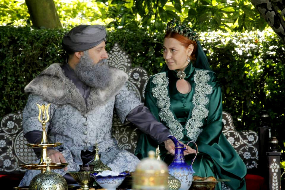 На мой взгляд, это сама сильная сцена в "Великолепном веке". Начиная с того, как великая Хюррем проходит по гарему, девушки расходятся, скромно на нее посматривая. И каждая из них в душе мечтает стать такой же блистательной султаншей, как Хюррем. Госпожа выходит в сад, где ее уже ожидают все её близкие люди: сыновья и беременная вторым ребенком дочка Михримах, многочисленные внуки и внучки, невестки и зять Рустем. Все по её просьбе приехали из своих санджаков и собрались во дворцовом саду. Хюррем подходит к Сулейману, сидящему на троне, и он знаком показывает, чтобы она села рядом с ним. Для османов такое было немыслимо... И к слову, Хюррем тоже впервые сидела рядом с Сулейманом на троне. Настоящая королева. Потом Хюррем становится плохо. В сопровождении своего супруга она покидает сад. Вновь проходит по гарему и от слабости падает, прямо в объятия Сулеймана, как при первой их встрече. Султан на руках приносит Хюррем в покои и кладет на кровать. Госпожа смотрит ему в глаза и звучат ее