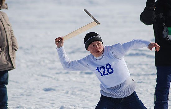 Это байки, - скажете вы. Это - официальный российский рекорд метания топора на дальность, - ответят вам атлеты северного многоборья. Метание топоров на дальность является частью этой дисциплины. Северное многоборье проводится только в России и относится к категории национальных видов спорта. Правда, топоры в этом виде спорта метаются особые. Общий вес снаряда по правилам должен составлять не менее 350 граммов, длина лезвия — 160 мм . А так, достаточно легкие, с рукоятью-крылом и топорищем, такие топоры преодолевают в полете отметки в одну-две сотни метров. Опытные спортсмены имеют по несколько снарядов, для разной погоды: те, что способны лететь "по ветру", или те, что предназначены для метания при встречном или боковом ветре, с рукоятками из разных видов древесины и т.д. Существует легенда, что метанием топора северное многоборье обязано одному из таежных охотников, которого так восхитил полет птицы, что он решил создать нечто, способное лететь. Так появился топор для дальних полетов