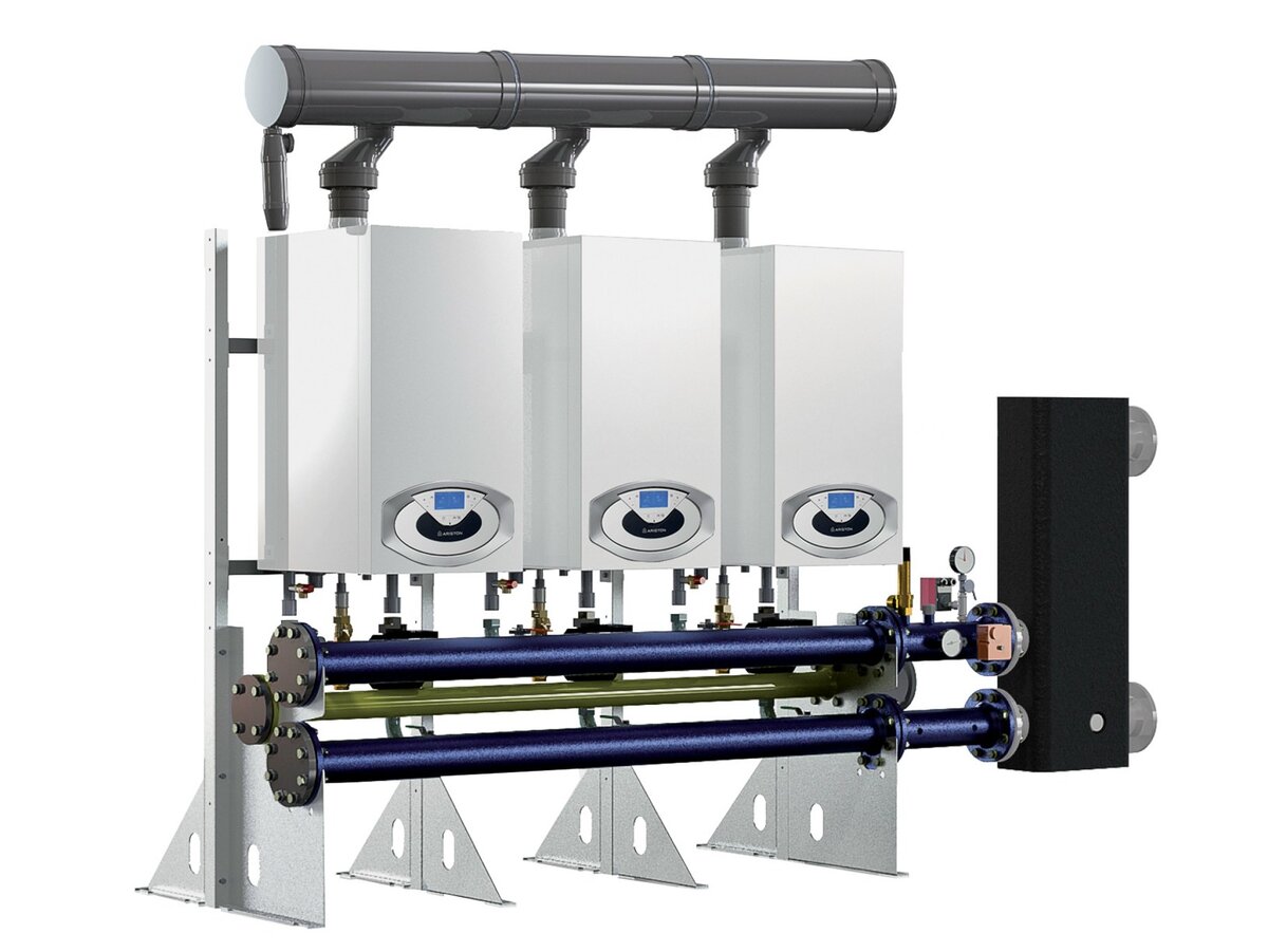 Для упрощенного монтажа каскадных котельных Ariston предлагает гидравлические модули, которые включают: циркуляционные насосы, трубную разводку радиаторного и напольного отопления, комплексы КИП и автоматику погодозависимого управления. Такие модули, специально разработанные под габариты и рабочие параметры котлов Ariston, полностью устраняют все возможные ошибки при проектировании, монтаже и пусконаладке котельной.