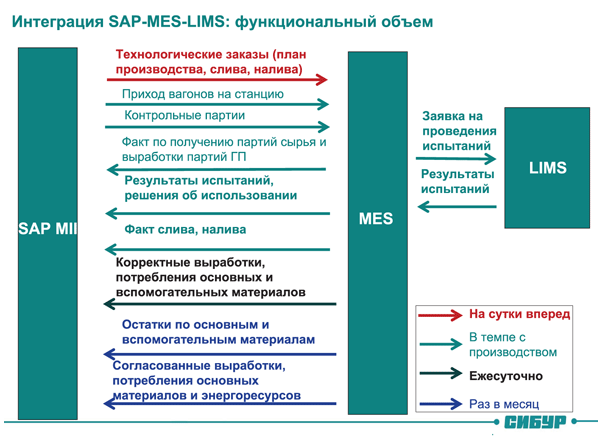 Проект по внедрению MES на воронежской площадке СИБУРа действительно уникален, поскольку именно здесь впервые в России удалось интегрировать две системы – MES и SAP. Благодаря интеграции появилась возможность максимально оперативно сводить материальный баланс завода. Данные об остатках готовой продукции на складе обновляются в MES и транслируются в SAP ежедневно.