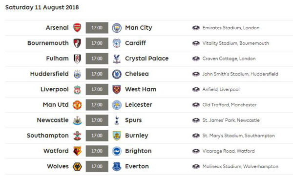Английская Премьер-Лига представила календарь на новый сезон. Первый тур, который пройдёт 11 августа, представлен десятью матчами: