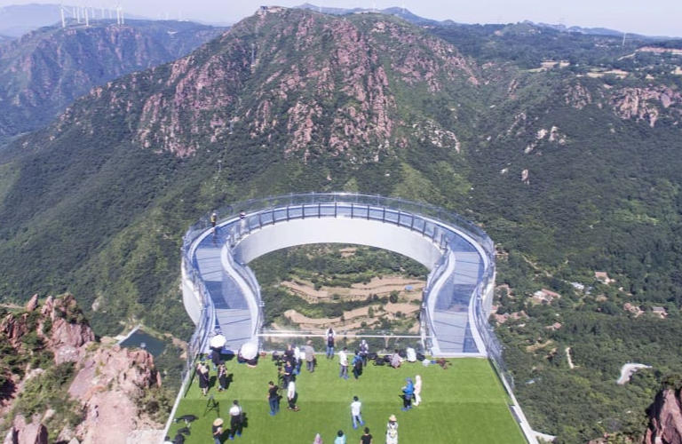 Новый аттракцион откроется 16 июня 2018 года на горе Фуси в провинции Хэнань. Представляет из себя смотровую площадку на выступе горы, сделанную из стекла и стали, которая позволит наблюдать живописные красоты не только за горизонтом, но и под ногами. Расстояние до земли составляет 360 метров. Даже если вам будет страшно подойти к краю, то вы можете смотреть на каньон сквозь стекло под ногами. Будучи самой густонаселенной страной мира со второй по величине экономикой в мире, Китай находит новые и все более интересные способы привлечь и развлечь туристов. Так же на горе Фуси построен самый длинный стеклянный мост, его длина составляет почти полкилометра. Мост простирается на 30 метров над краем скалы, превосходя другие U-образные чудеса, такие как Гранд-Каньон Аризоны Скайуок, который выходит всего на 21 метр над знаменитым ущельем в США. Другие по истине страшные, но удивительные места в Китае. Самая большая в мире стеклянная смотровая площадка в Пекине. Выходит вперед на 32,8 метра