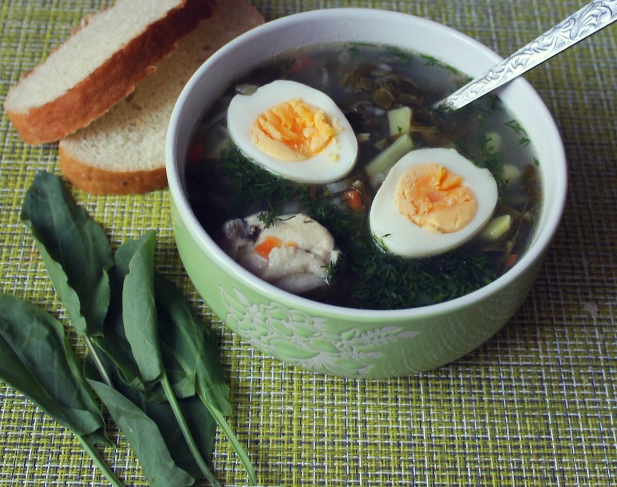Самый любимый зелёный супчик, простой, ароматный и такой красивый. Для меня этот суп создаёт настояние, летнее, тёплое настроение. Приготовить такой суп очень быстро, главное это конечно щавель, а вот с остальными ингредиентами можно экспериментировать, можно добавить шпинат, сварить на говяжьем или курином бульоне, добавлять морковь или нет, добавить в обжарку сметану или добавить ложечку сметаны прямо в тарелку... С яйцами тоже несколько вариантов, сварить яйцо отдельно и покрошить в суп, или положить красивые половинки в тарелку, или размешать сырое яйцо вилкой и влить тонкой струйкой в горячий суп. Я расскажу, как я чаще всего делаю – просто и быстро. Нам потребуется: Куриные крылышки Щавель Репчатый лук Морковь Картофель Зелень Соль, специи 1. Ставим вариться крылышки. 2. Варим яйца. 3. Лук и морковь нарезаем кубиками, картофель – соломкой. 4. Я лук пассирую в микроволновке, это очень удобно, не нужно следить и постоянно мешать. Выкладываю лук в плоскую тарелку, добавляю масл