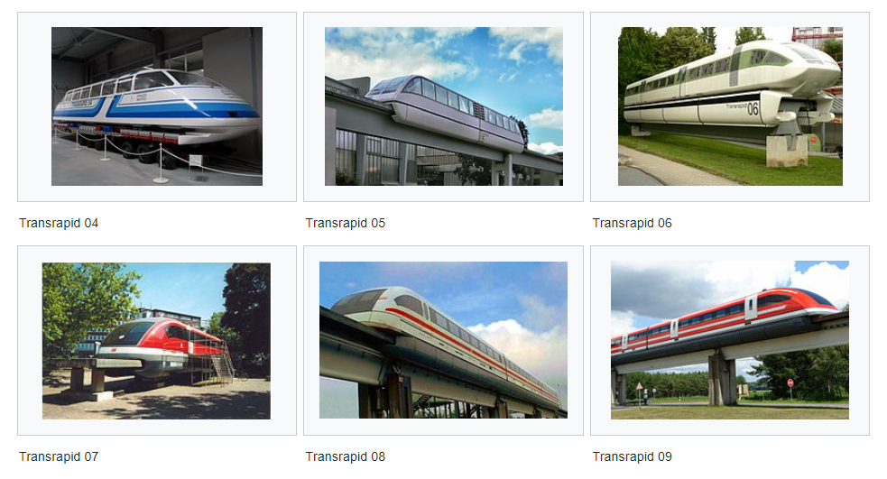 Поезда на магнитной подушке не касаются рельсов в процессе движения. Их удерживает на пути электромагнитное поле. Поэтому другое их название — маглев (magnetic levitation) или магнитоплан. Поскольку отсутствует трение, поезда на магнитной подушке могут развивать скорость, сопоставимую со скоростью самолётов. И самые быстрые поезда мира в большинстве своём — это маглевы. В Германии Есть немецкая компания Transrapid, которая занимается разработкой поездов на магнитной подушке. В 1984 году даже был построен собственный полигон с испытательным кольцом, но в 2011 году закончилась лицензия на эксплуатацию той трассы, и её должны были разобрать. Пока не разобрали, но и не используют. Первая публичная дорога такого типа была открыта в Германии после долгих испытаний в 1989 году. По трассе длиной 1,6 км по выходным ходил вагончик на автоматическом управлении, без машиниста. Но через 13 дней её закрыли, потому что муниципалитет решил строить там метро, и трасса для маглева прерывала важную лини