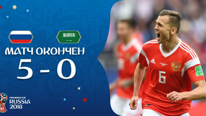 Россия - Саудовская Аравия 5:0. Видео голов Россия разгромила Саудовскую Аравию со счётом 5:0 в матче открытия ЧМ-2018. Счёт в матче открыл полузащитник Юрий Газинский, который отличился после передачи Александра Головина. Ещё до перерыва полузащитник Денис Черышев удвоил преимущество России гол был забит на 43-й минуте, а голевой передачей отметился Роман Зобнин. На 71-ой минуте Артём Дзюба забил третий гол российской команды, а в качестве ассистента снова был Головин. Четвёртый мяч на первой компенсированной минуте забил Черышев, оформивший дубль в этом матче, а Дзюба отметился голевой передачей. Пятый гол забил Головин, реализовавший удар со штрафного. http://football-russian.ru/chempionat-mira/1596/rossiya-saudovskaya-araviya-5-0-video-golov.html