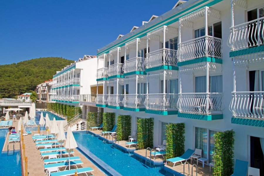 Обратила внимание, что в топах необычных и интересных отелей и бассейнов почему-то всегда участвуют дорогие пятизвездочные гостиницы, хотя в Турции, например, есть подобные комплексы с 4 и даже 3 звездами по доступным ценам. Рекомендую топ 5 отелей Турции с необычными бассейнами, селфи в которых обязательно станет хитом. Sertil 4* (Олюдениз) Отель новый: построен в 2015 г. Расположен Сертил в курортной зоне Олюдениз и в 3 км от знаменитого пляжа Кумбурну. Из окон этой небольшой (всего 56 номеров) гостиницы открывается чудесный вид на море. Изюминка отеля: Ряд номеров не просто имеют прямой выход в открытый бассейн – вода омывает террасу комнаты. Особенность гостиницы: Номера люкс оснащены гидромассажной ванной. Преимущества комплекса: На территории работают сауна, хаммам , фитнес-центр, турецкая баня, оригинальный крытый бассейн, несколько баров (в т. ч. снэк-бар), дайвинг-центр. Однако: В отеле подается только завтрак, но в ресторане можно заказать блюда по меню. Marti La P