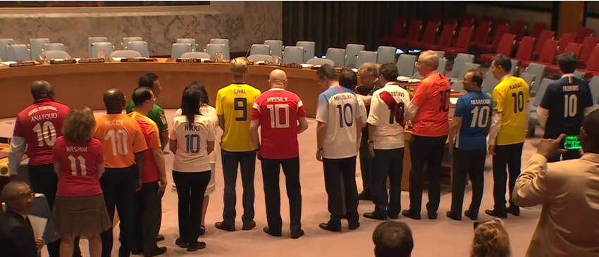 Постпреды стран ООН отметили открытие ЧМ-2018 в футболках своих сборных.