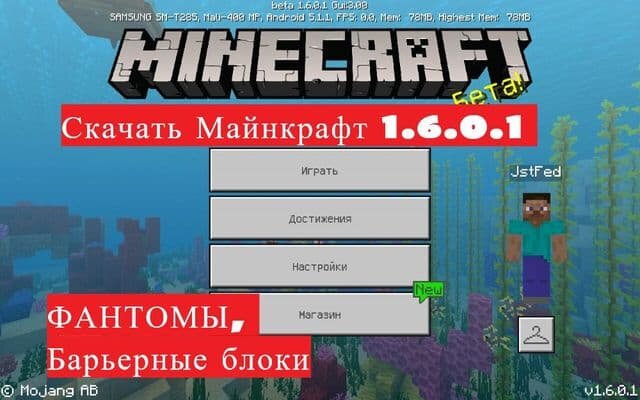 Вышло неожиданное обновление. Разработчики до выхода релиза 1.5 решили выпустить версию игры Майнкрафт 1.6.0.1. Давайте рассмотрим нововведения. Что добавили в Minecraft 1.6.0.1? Итак, в игре появились: - Фантомы - Барьеры Остальные изменения незначительные, но а чтобы скачать игру или почитать подробнее о нововведениях переходите по ссылке: https://planet-mcpe.com/mc16/